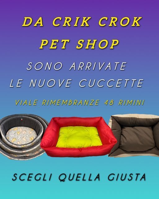 Crik Crok è il tuo pet shop di fiducia a Rimini! Troverai alimenti, accessori e giochi per i tuoi amici animali oltre a personale gentile e disponibile.